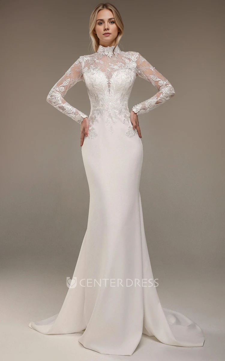 Mermaid Vintage Princess Lace Spring Wedding Dress Elegant Satin Long Sleeve Gown